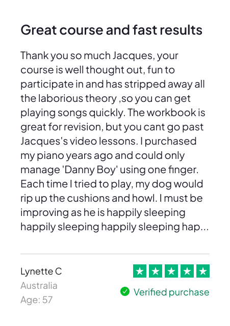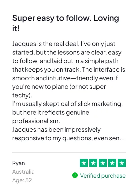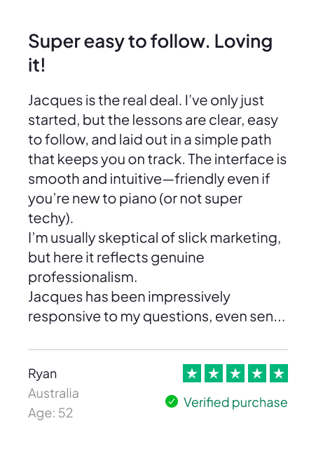 Hi, I’m Jacques — and I help regular people learn how to play real songs on the piano, fast.