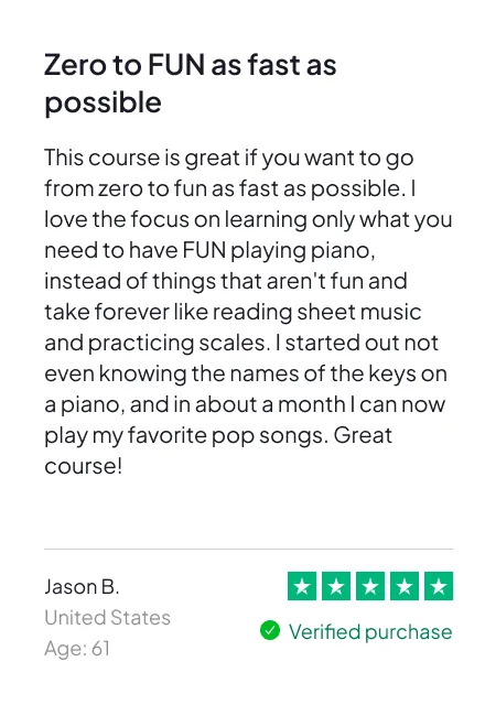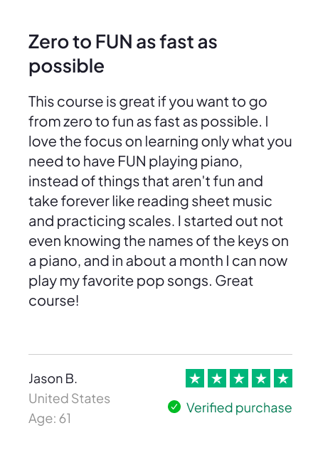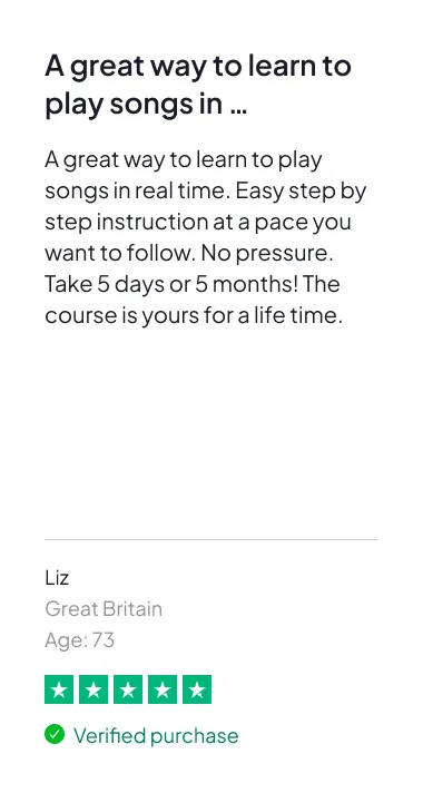 We’ve seen it work again and again, and we’re so confident in the results that we’re willing to take all the risk because it’s a proven, repeatable system that’s already helped over 200,000 adults learn how to play real music — even if they started out believing they were too old, too busy, or just not naturally musical.