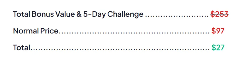 Total Bonus Value & 5-Day Challenge ..... $253